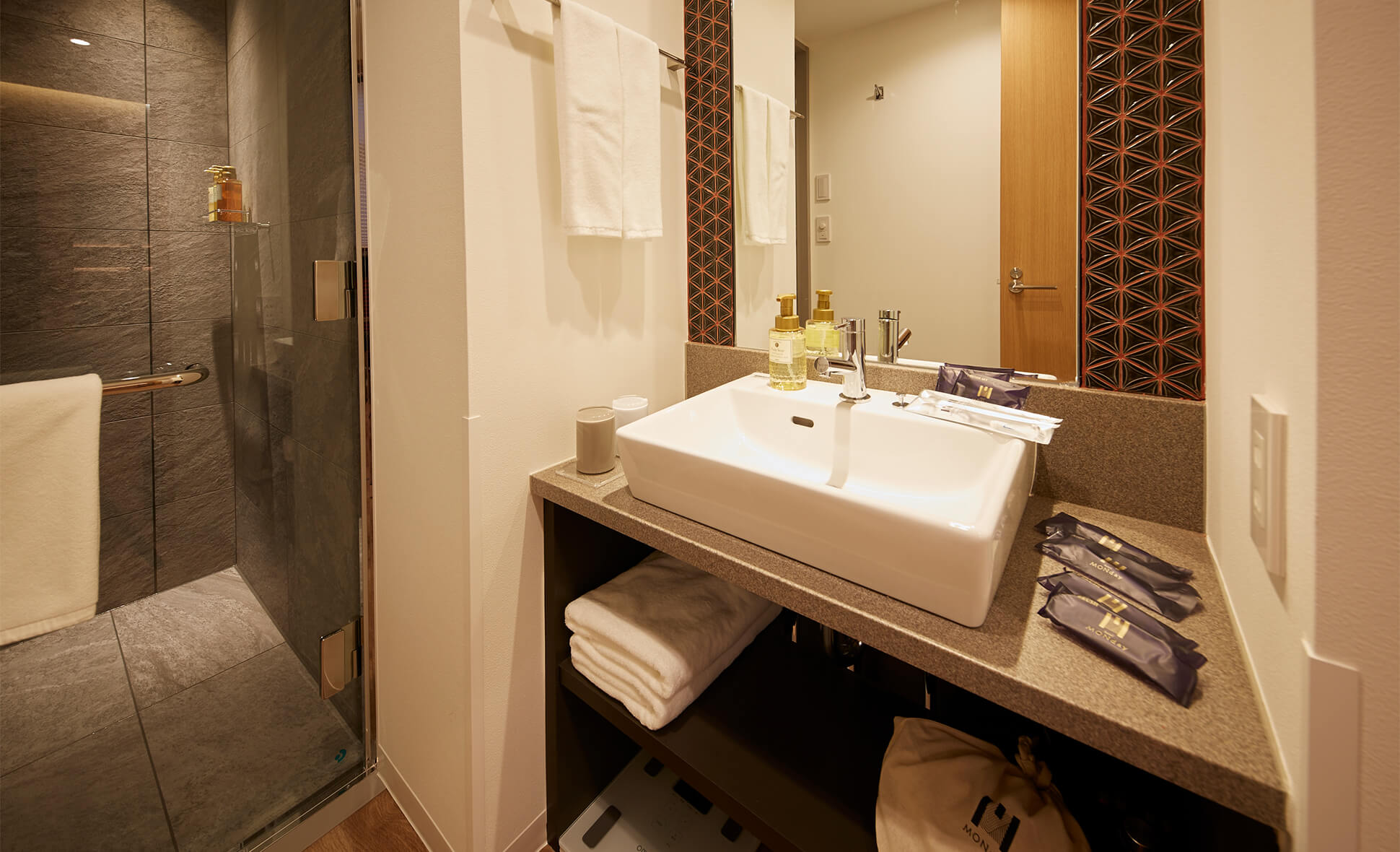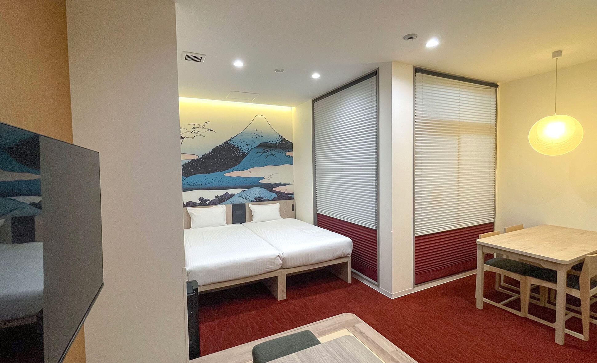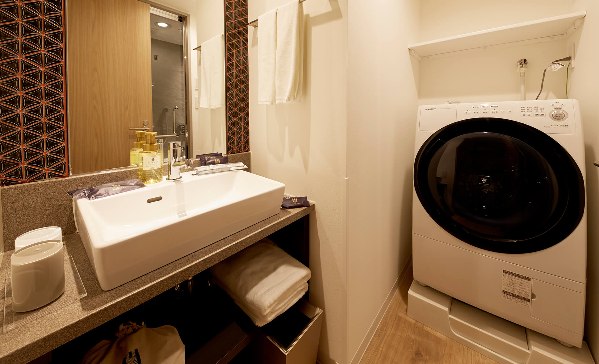 The wallpaper in the rooms features famous Japanese statues and portraits in an American comic book style for guests to enjoy. Original hand towels and eco bags are also included as gifts!