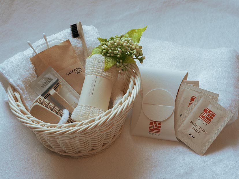 アメニティの素材は、ムギの廃棄部分からなる再生可能な生物資源を含有することにより、約29%のプラスチック削減を実現しています。