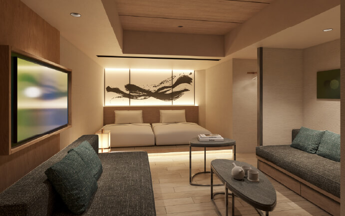 Suites offer over 35 square meters of space, showcasing a seamless blend of modern design with distinctive Japanese accents.