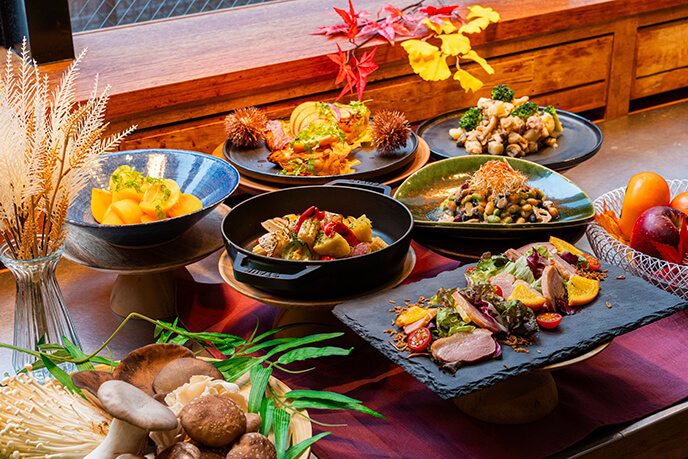 旬の野菜や果物とともに、秋の味覚をたっぷりお楽しみください。